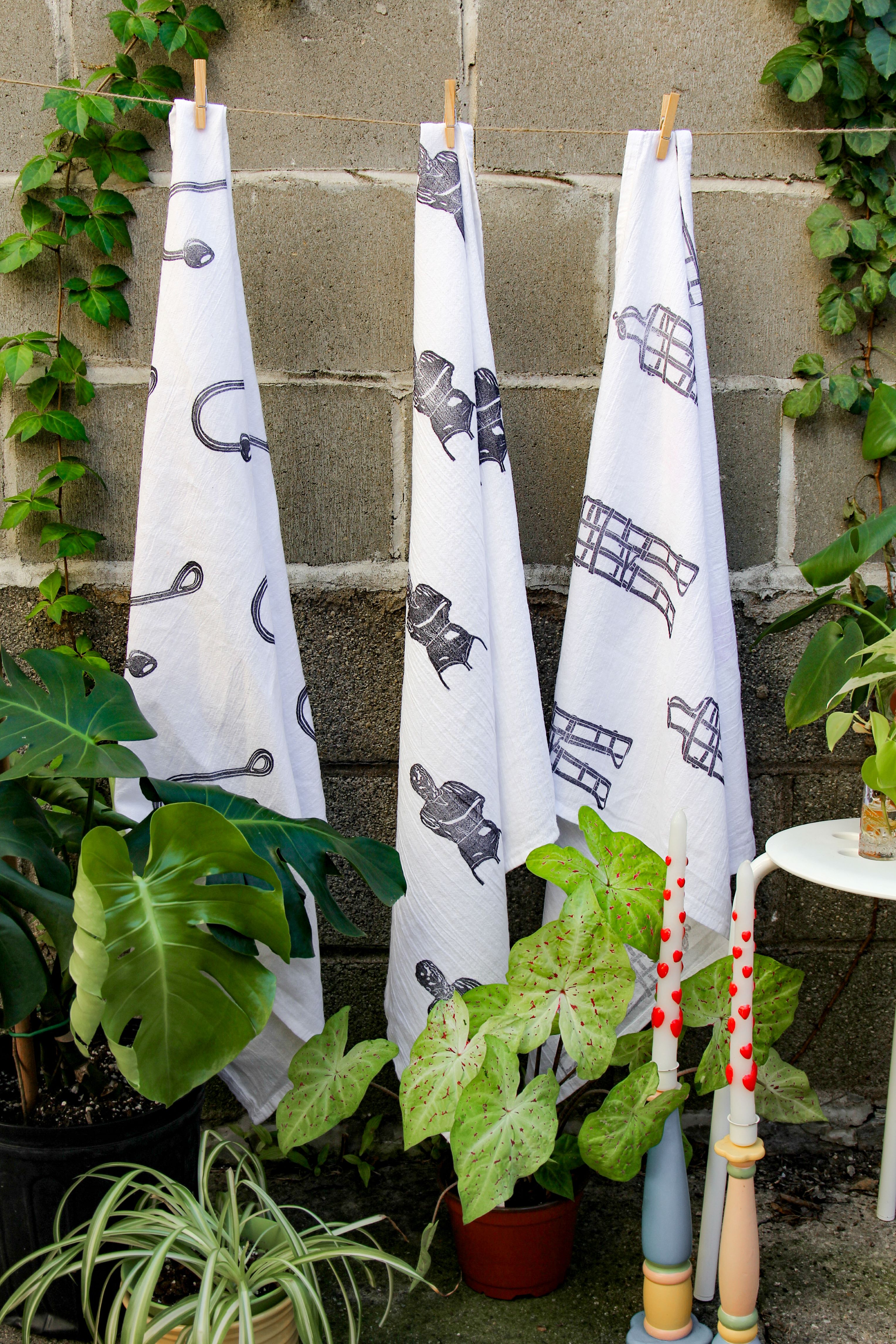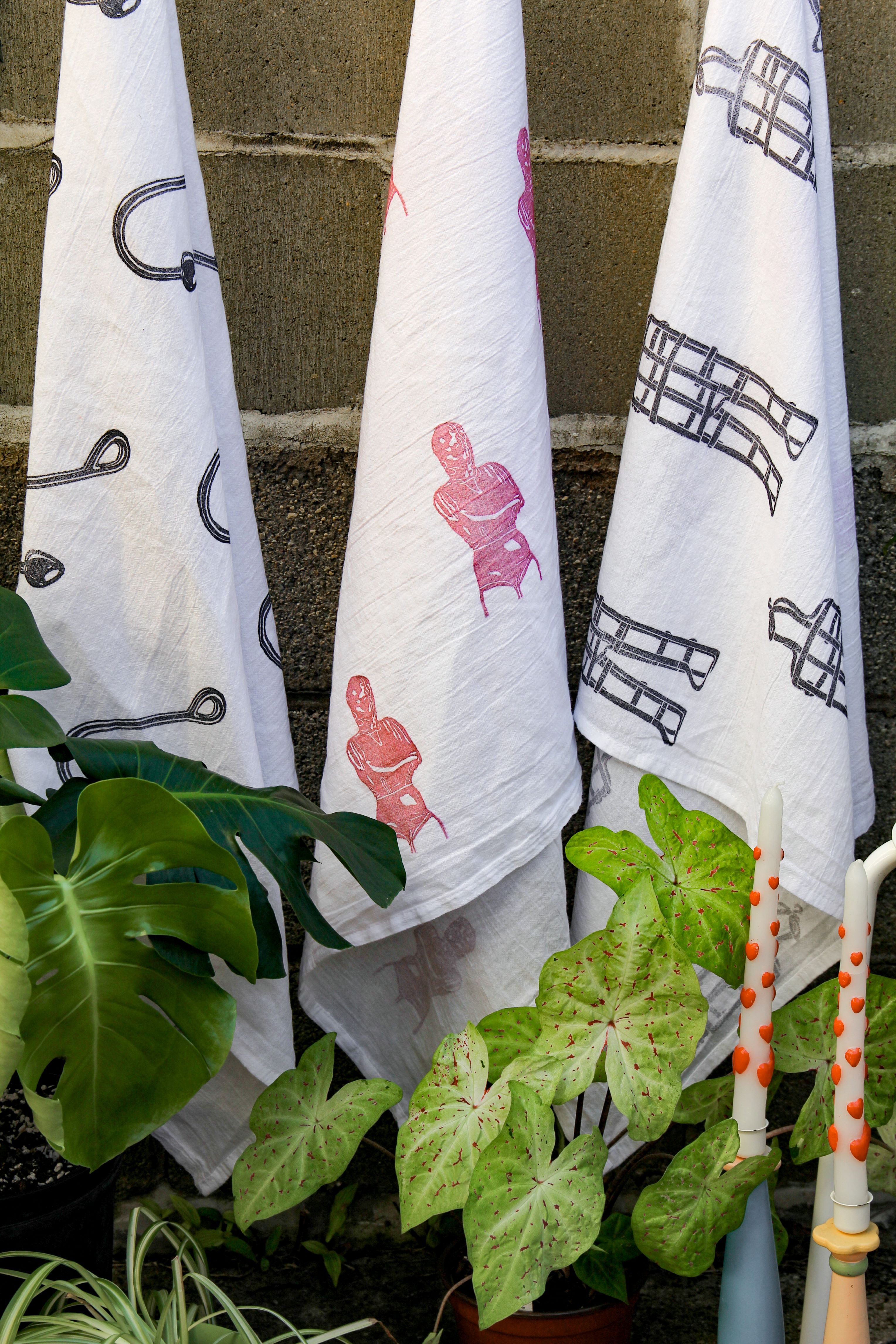Leather Stigmata Hand Printed Tea Towel Set